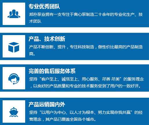 邦朴泵业拥有一支专注于离心泵制造二十余年的专业化生产、技术团队